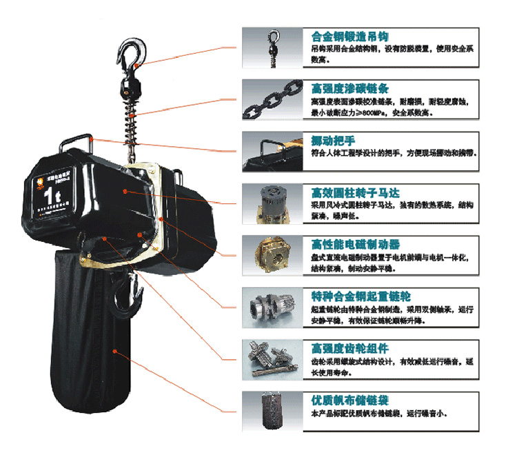 HHXG型舞臺(tái)環(huán)鏈電動(dòng)葫蘆是一款高效低能耗的電動(dòng)葫蘆。整機(jī)重量輕、結(jié)構(gòu)緊湊合理,沖壓鋼構(gòu)殼體,輕巧而堅(jiān)固。HHXG型舞臺(tái)環(huán)鏈電動(dòng)葫蘆專為舞臺(tái)電動(dòng)鏈條吊車倒置或正常的位置而設(shè)計(jì)制造,舉凡舞臺(tái)音響/燈光/布景/鋼架用途廣泛。具有高可靠性,上、下都有極限開關(guān)裝置,微動(dòng)開關(guān)反應(yīng)速度短,能快速有效地止動(dòng),防止鏈條超出,確保安全。